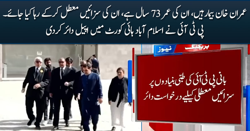 PTI filed petition in Islamabad High Court seeking suspension of Imran Khan's sentences